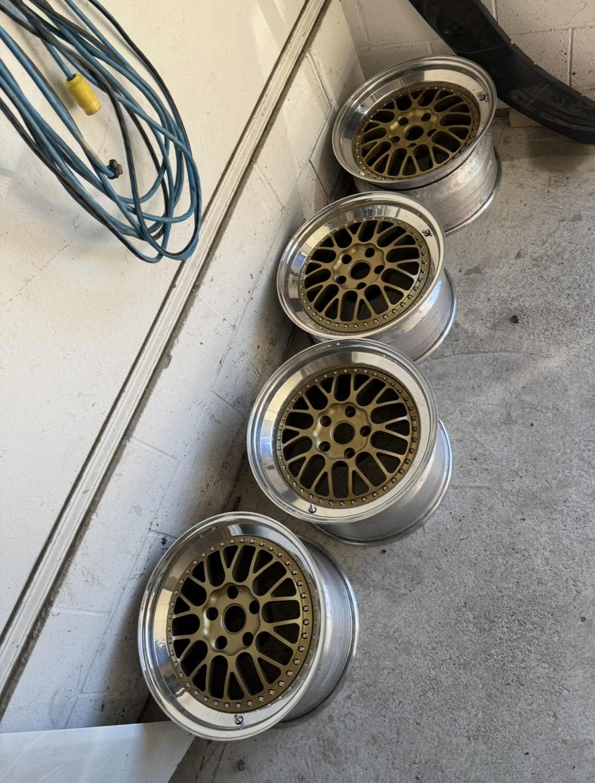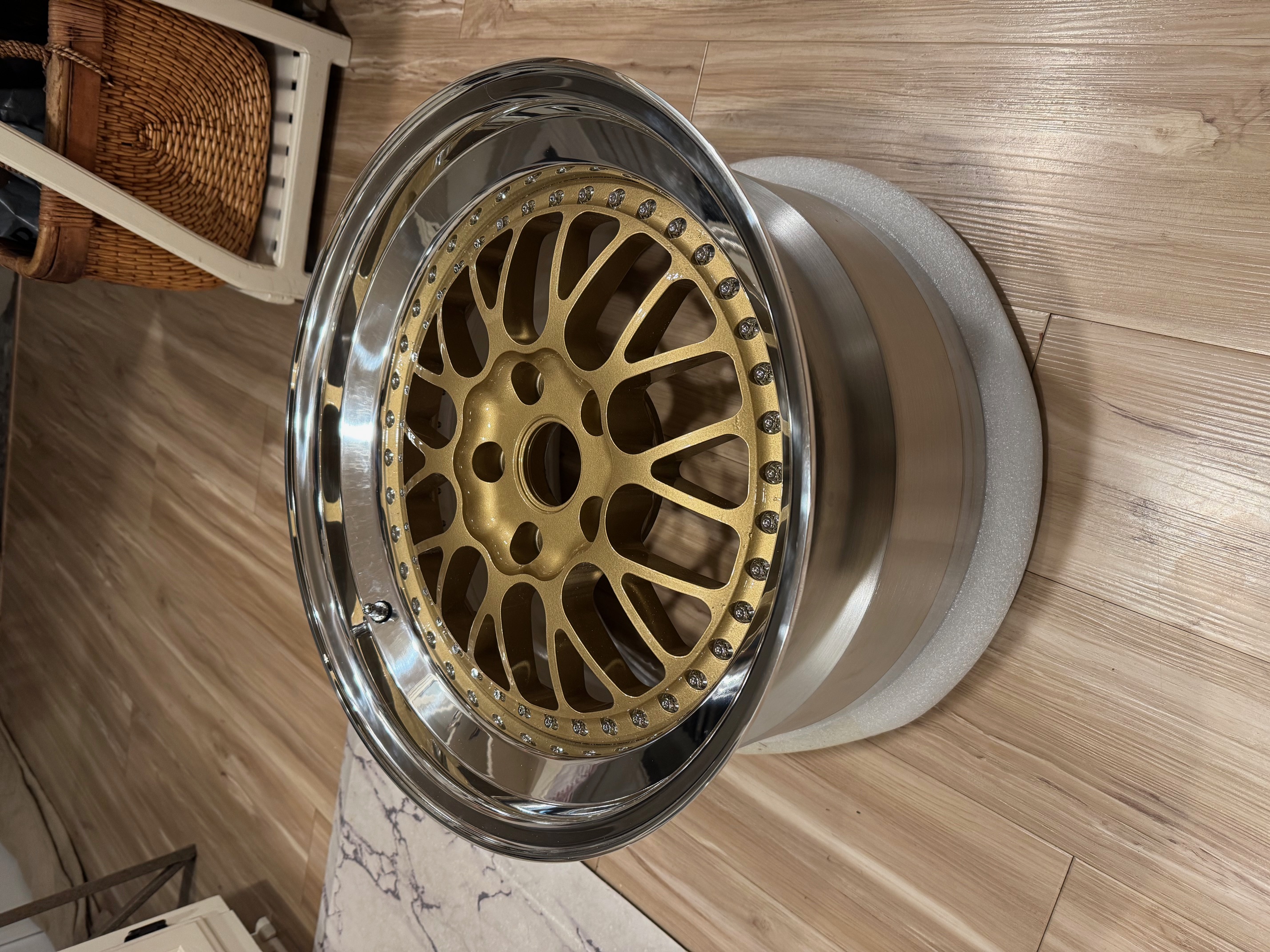 Hello, I am listing my 5x120 18" Kinesis K27 18x9.5 et44 18x10.5 et44 2" lips on the front with 7.5" barrels and 3" lips on the rear with 7.5" barrels. Wheels were built 7k miles ago with new lips, barrels, and hardware from Sensei 6. Faces were powdercoated Spanish Gold however during the baking process some areas didnt set right so they're not 100% perfect. Would give the faces a 7.5/10. I apologize for the terrible pictures. Will get better more clear pictures soon. Looking for $2500 Will ship at buyer's expense or can be picked up locally in Spokane WA. They DO NOT come with tires. Cheers!
