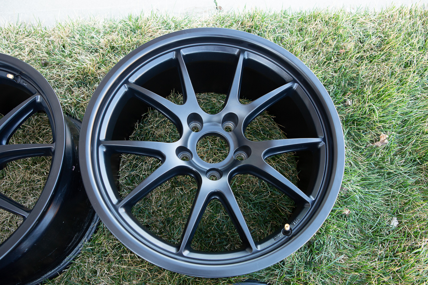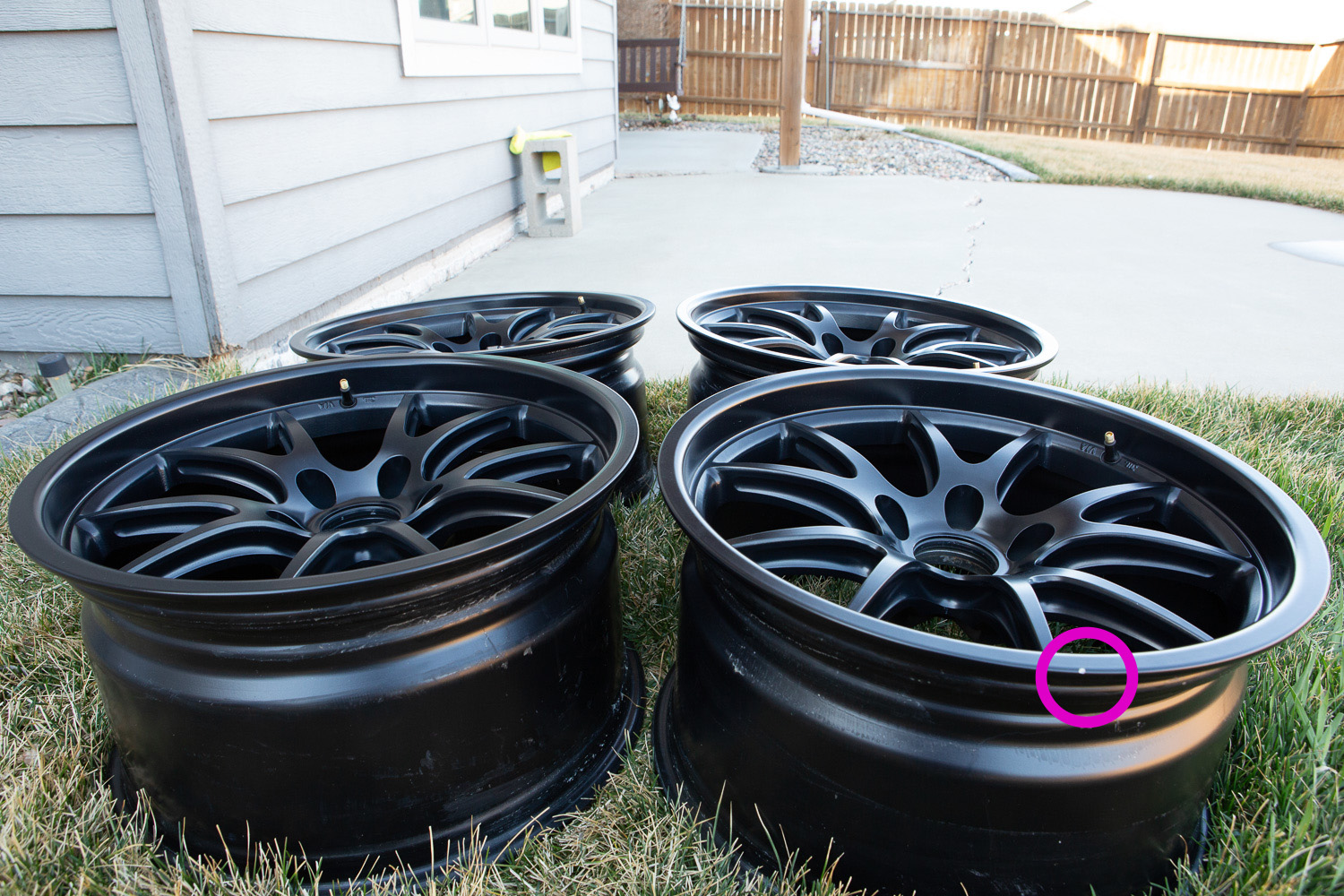 No flaws that I can see besides the little nick highlighted in photo. (tire shop did it )