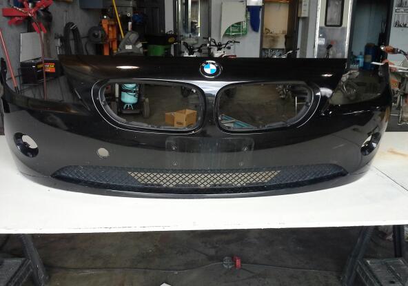 I recently purcahsed the BMW Z4 Aero front bumper cover so I am selling my original OEM bumper cover. Painted in OEM BMW 475 Black Sapphire metallic. It's in good condition, no cracks. There is one small scuff on the very far passanger side corner(see photo) and a few very very tiny little rock bug chips but you really have to look close to see them. Includes the lower grill insert, the amber round corner markers and the BMW Roundel badge installed as shown. Bumper has 4 drilled holes for front plate. Does not include cap for tow hook hole. I have this listed here and Craigslist. Local pick-up only in the Naperville, IL area, this thing is too big to ship. $130.00 or best offer , Cash And Carry Only PM me if interested and I will respond with a phone number. |
